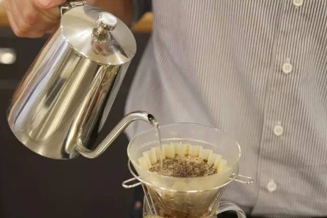 錐形壺的優勢在于,當濾碗大小合適時,咖啡師可在預沖泡后一次性倒入剩余熱水。與階段性倒水相比,一次性倒水能夠保證水溫,避免咖啡產生尖酸的口味。我品嘗過用 V60 和階段性倒水法制作的咖啡,咖啡的味道偏酸,這是由于萃取過程中水溫過低所致。