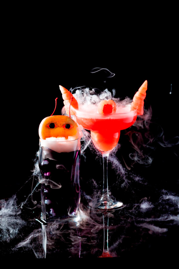 「邪惡魔咒」(Evil Spell)、「紅色女巫」(Red Witch)兩款「驚悚」創意雞尾酒。「邪惡魔咒」在伏特加的濃烈中融入,再加茉莉花風味以黑加侖子與檸檬汁,杯中妖魅奪目的幽藍令人一試傾心。而「紅色女巫」則個性張揚,以晶瑩的酒杯承載著搶眼的血紅酒液,伏特加與黑加侖子、覆盤子、西瓜的愉悅果香交織出美妙口感,為富于魔幻色彩的萬圣節狂歡之夜增添無限驚喜。