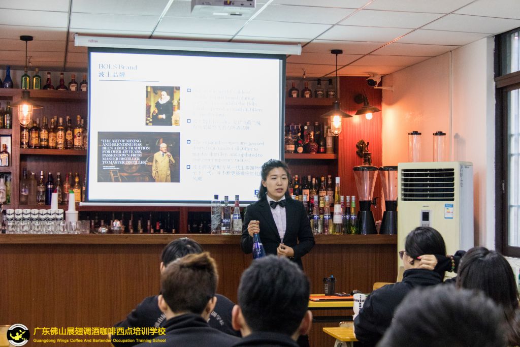 課程的開始BOLS品牌大使KAYLA謝思明先給學員們介紹了BOLS品牌的歷史文化,和新品的原理理論知識,這讓學員們對BOLS品牌有了一定了解,從而增加了學員對調酒品牌的基礎知識