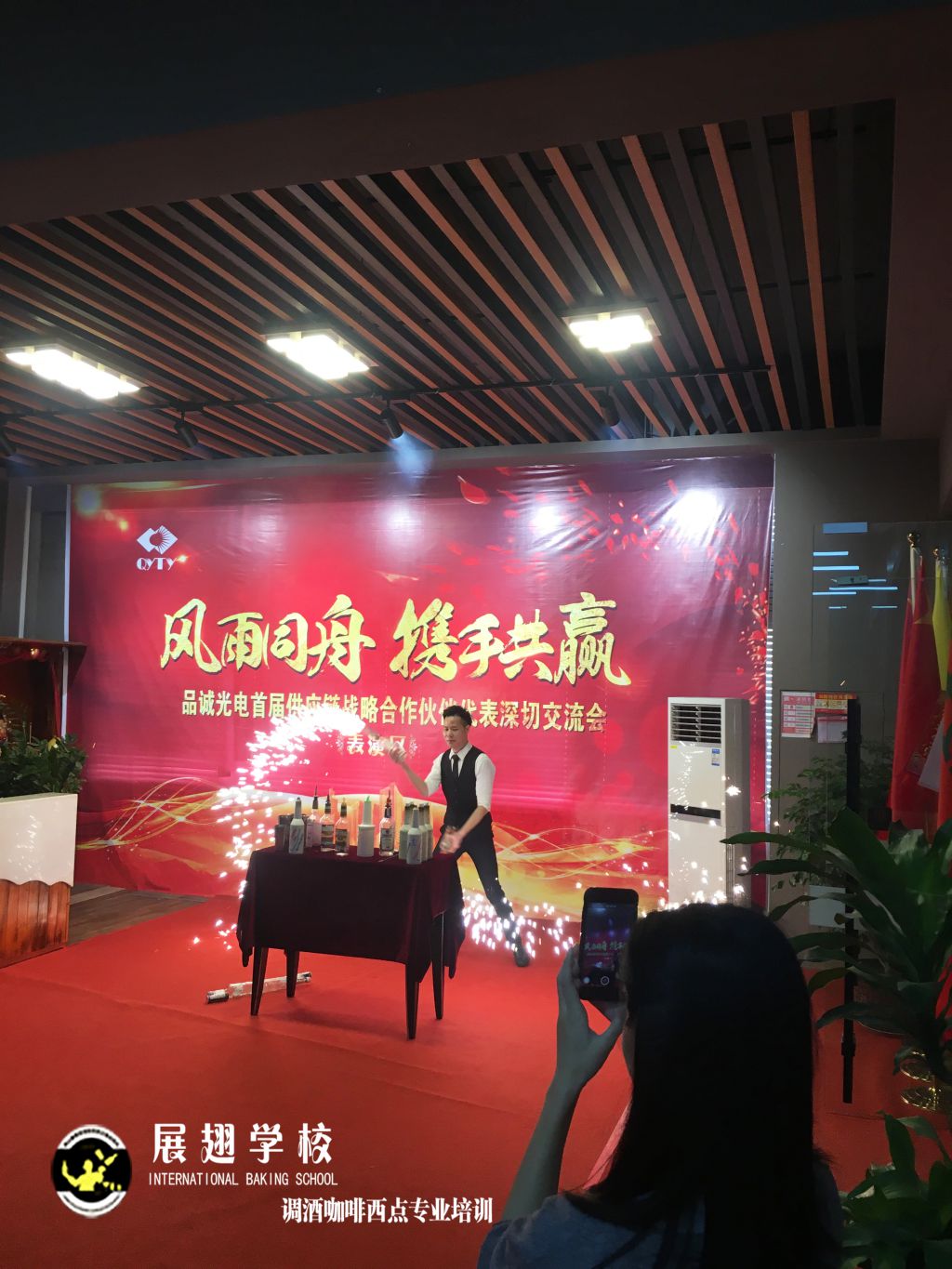 <佛山展翅調酒咖啡西點培訓學校>調酒師朱歡洪&謝克朗受邀出席中山品誠光電交談會,并擔任活動現場花式調酒演出嘉賓。如果你想成為一名優秀的花式調酒師,要不斷的實踐、學習、讓自己擁有更豐富的技能知識http://www.chinajindi.com