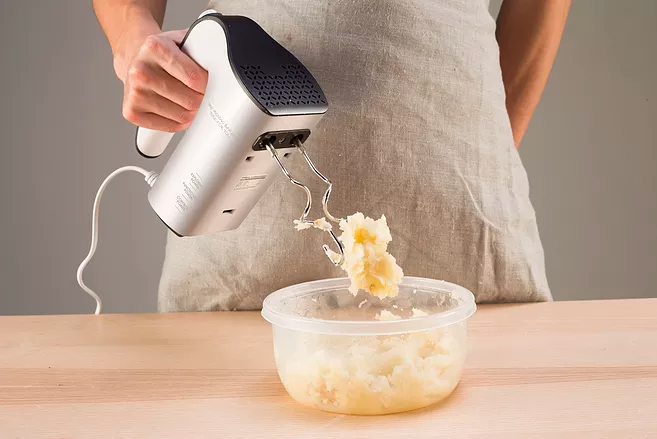 電動打蛋器則用于打發雞蛋、黃油、蛋白霜、鮮奶油等各種原料,混合濕性面團,這些原料如果手動打費時費力而且效果不佳,就需要交給電動打蛋器了,省時又省力。購買時建議選擇功率大一些,可以調節速度檔位,輕巧耐用,噪音小一些的。